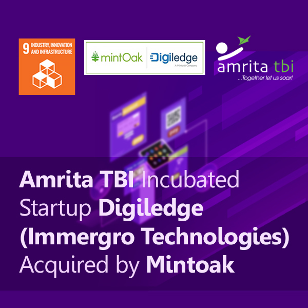 Digiledge (operated by Immergro Technologies), an Amrita TBI incubated startup, has been acquired by Mumbai-based fintech platform Mintoak in a strategic move to expand its service...
