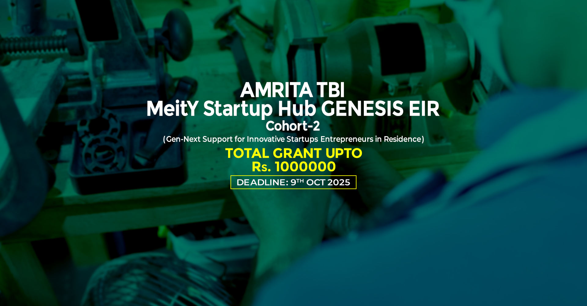 Amrita Technology Business Incubator is one of the select implementing agencies by the MeitY Startup Hub, Government of India. The GENESIS EIR Programme would provide subsistence grant upto to Rs. 10,00,000 per year to an aspiring or budding entrepreneur of considerable potential for pursuing a promising technology business idea.