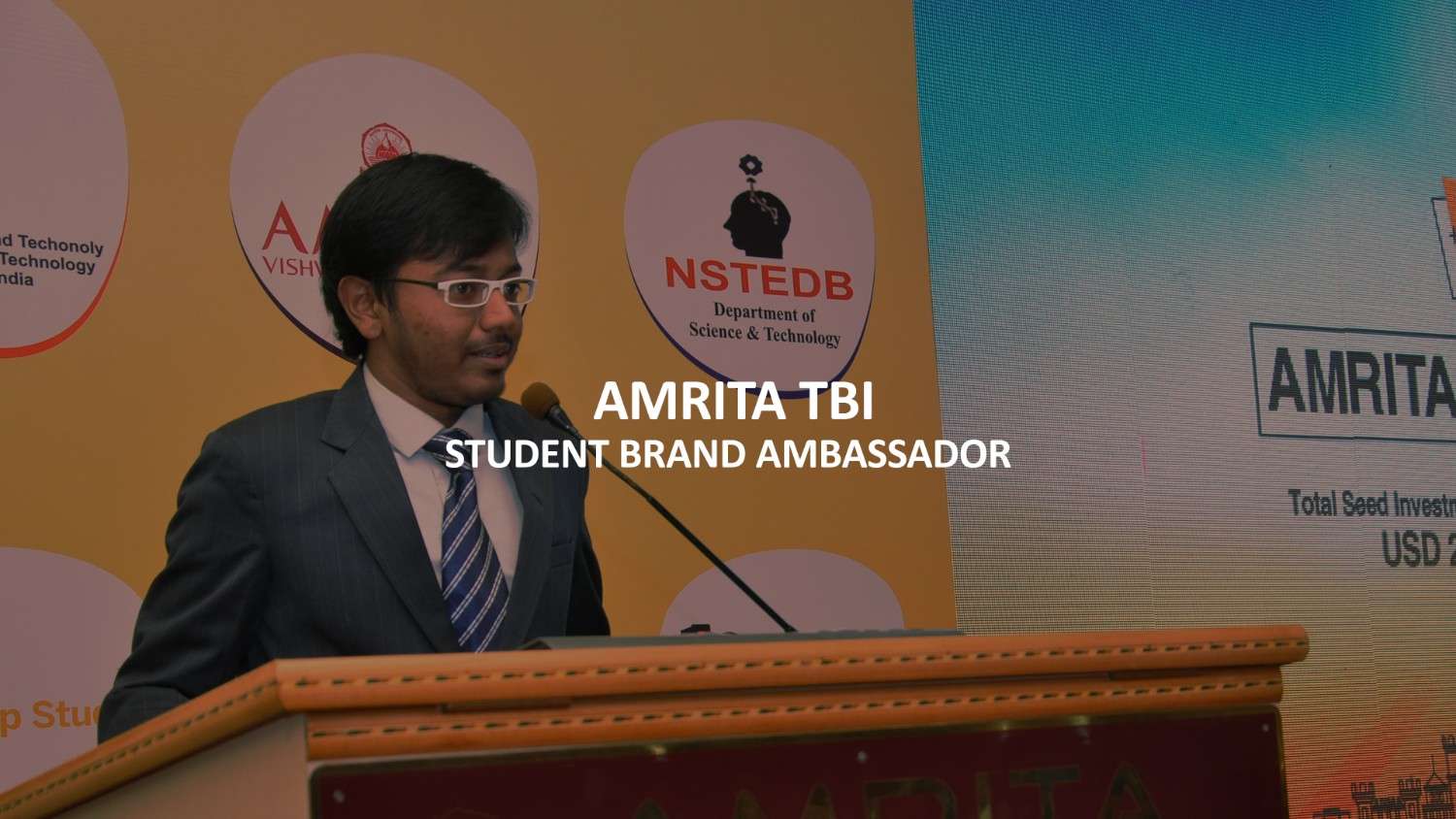 Amrita TBI Student Brand Ambassador program introduced in 2014 opens up opportunities for students to closely work in startup support programmes. Elected students work for various programmes of Amrita TBI like Amrita TBI Pitchfest, Innovation Challenge, Amrita TBI StartupHub, Amrita TBI Startupcell and other events. Amrita TBI SBAs works among students of Amrita institutions to promote innovation and entrepreneurship.