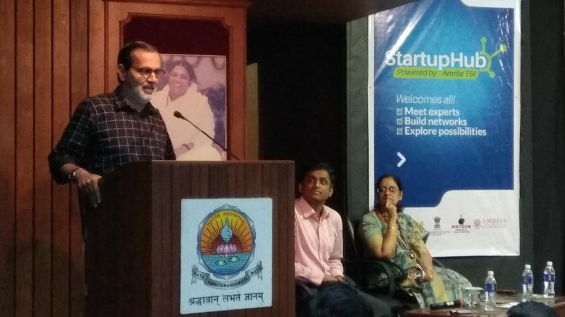 The first edition of Amrita TBI startup hub aimed at building a strong entrepreneurial framework was conducted at the largest urban agglomeration at Amrita Vishwa Vidyapeetham’s, Kochi Campus. It gathered momentum as a networking event on 23 Sep 2017 when the chief guest of the event Shri Kochouseph Chittilappilly, Founder, Chairman, and CEO of V-Guard Industries delivered the keynote address. The versatile event brought together a diverse group of experts with similar ideologies and also included budding entrepreneurs and students.